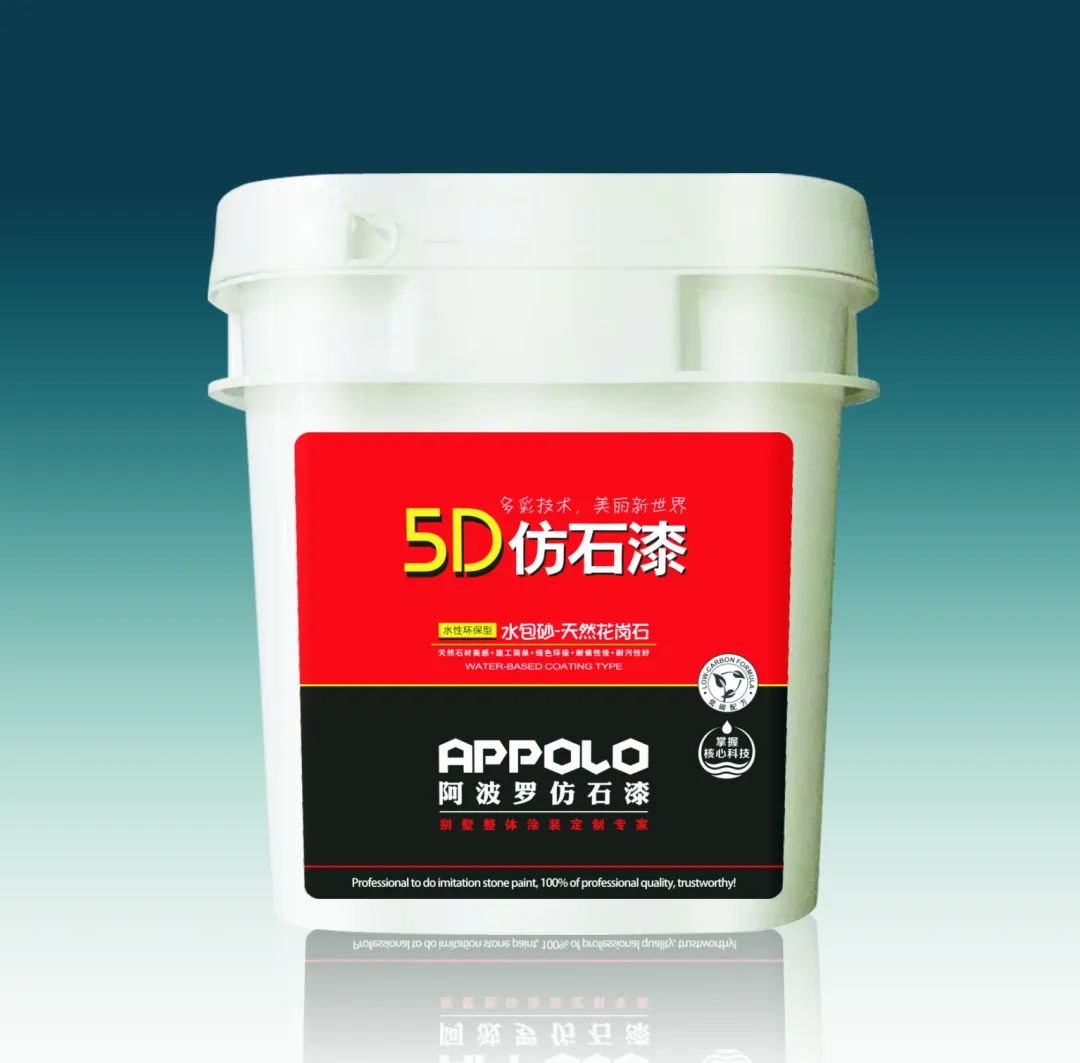 阿波罗5D水包砂天然花岗石仿石漆(仿大理石漆)是一次喷涂成型的新型仿花岗岩涂料。该产品色彩逼真、花岗纹理自然流畅,表面光洁柔和滑爽,手感不毛糙,具有与花岗岩相同的高档次装饰和外观效果,可以充分的展示出建筑的靓丽与豪华,能替代花岗岩而用于内、外墙装饰,在提供丰富的创造同时,还满足了现今环保节能的建筑涂料市场。